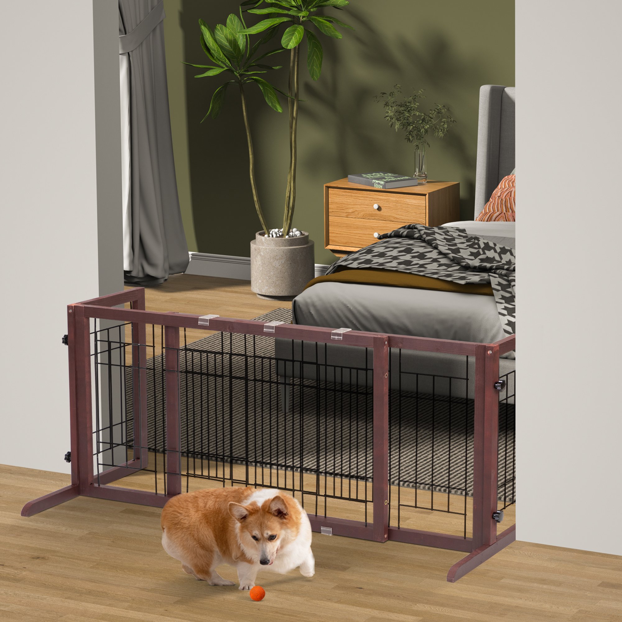 Home > 38"-71" Adjustable Wooden Pet Gate for Dogs, Indoor Freestanding Dog Fence for Doorways, Stairs, Deep Brown