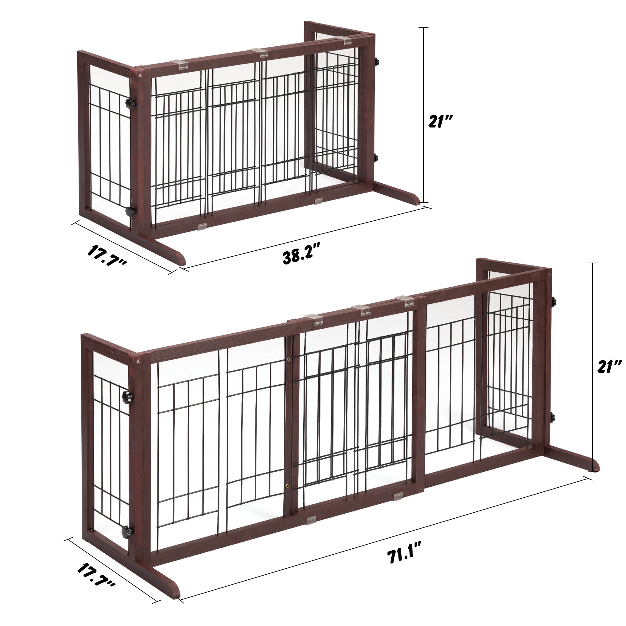 38"-71" Adjustable Wooden Pet Gate for Dogs, Indoor Freestanding Dog Fence for Doorways, Stairs, Deep Brown