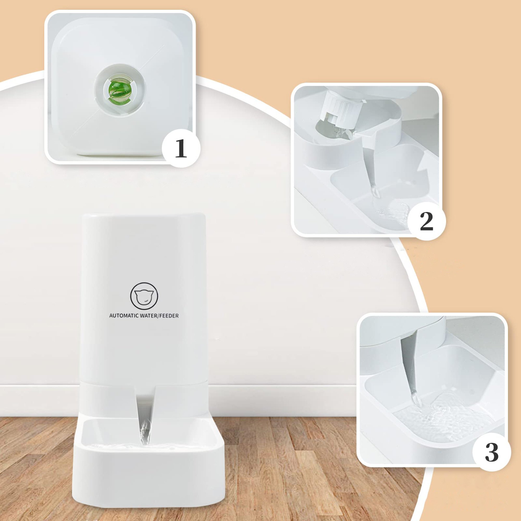 This innovative system utilizes siphoning and gravity to continuously replenish water and food without the need for electricity. Rest assured about your pet's well-being whether you're on a short trip, working, or out for a date.