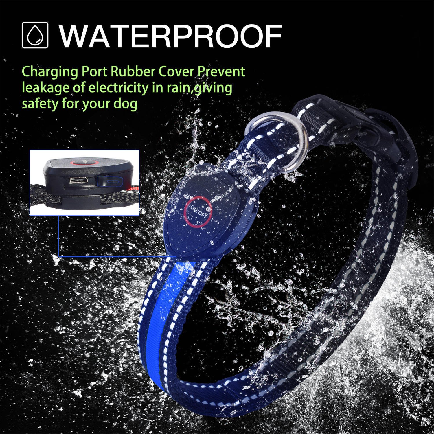 [Fully Adjustable Size]: No worries the size of our lighted dog collar; fits the neck of your dog or not; our light up collars for dogs at night is fully adjustable; and we provide 2 sizes that can easily find which one is fit for your dog [See in fifth picture]