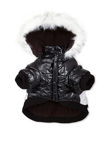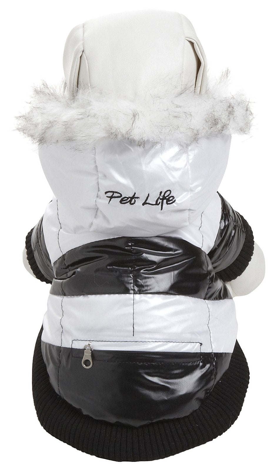 The Pet Life ULTRA-PLUSH STRIPED FASHION DOG PARKA Jacket Features a 'Zip-Off' Removable Hood and a Dual-Toned Black and White Pattern. This Jacket is composed of High-Quality Sponge Polyester Water-Resistant Fabrics and is inner lined with fleece. The Jacket Features a Leash Slit-Holder along the backside and a "U" shaped usable back zippered pocket for any added belongings. Features Thinsulate Insulation Technology keeping your pet warmer during those harsher colder climate weather conditions.